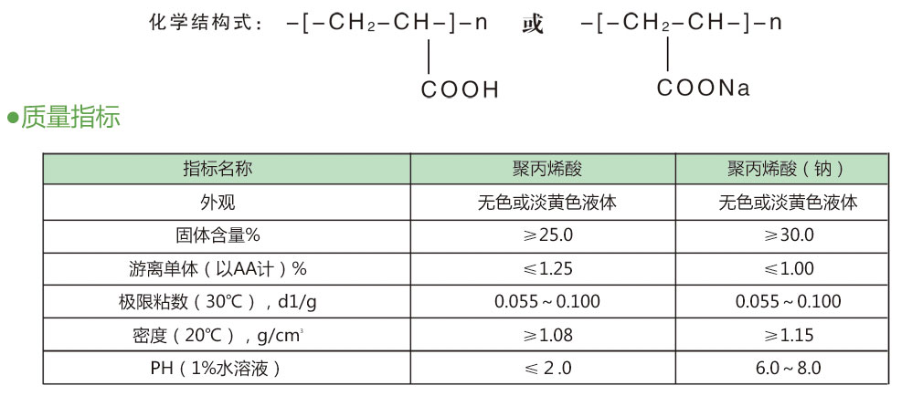 聚丙烯酸及其鈉鹽是一種低分子量聚合物,是目前應(yīng)用廣泛的聚羧酸型水處理藥劑之一,可以單獨使用,也可與有機膦酸鹽、有機磷酸酯或聚磷酸鹽復(fù)配使用,有較好的協(xié)同效應(yīng),對碳酸鈣垢阻垢效果尤為明顯。在高PH、高濃縮倍數(shù)下運行不結(jié)垢。聚丙烯酸排放時不會污染環(huán)境。